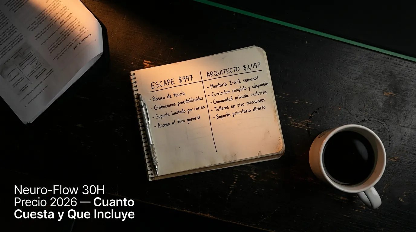 | Neuro-Flow ARQUITECTO | Programa + mentoria | $2,497 | Directo + comunidad | Si (4 pilares) | 40-60% |